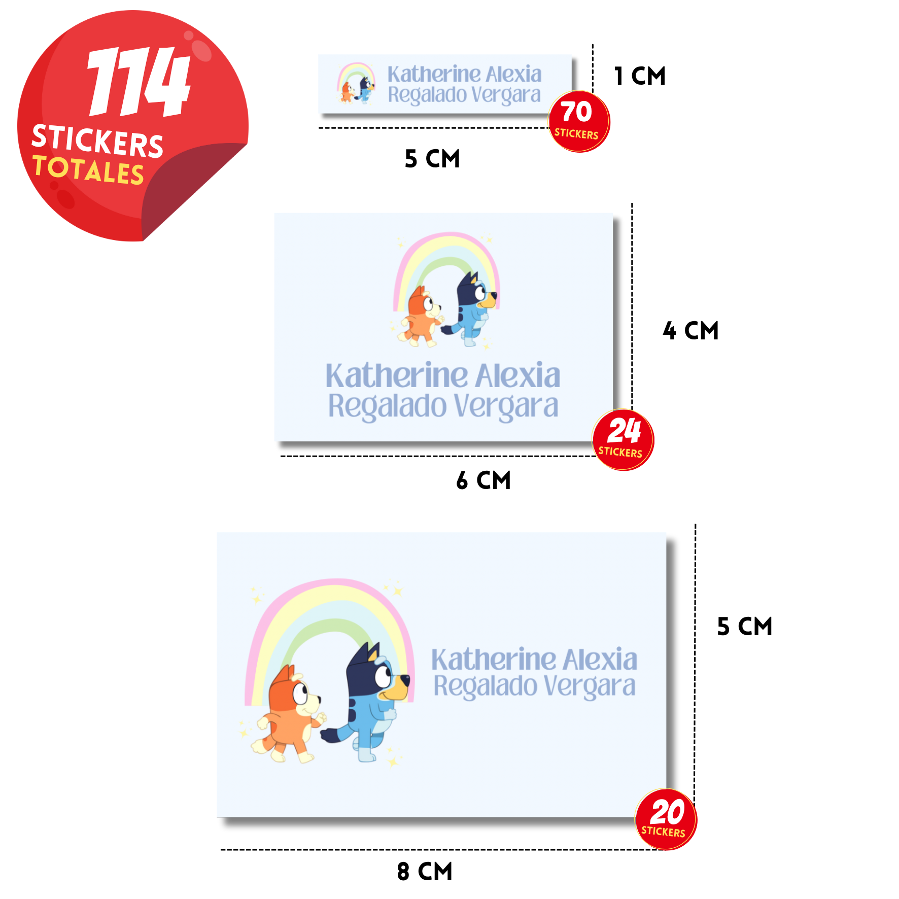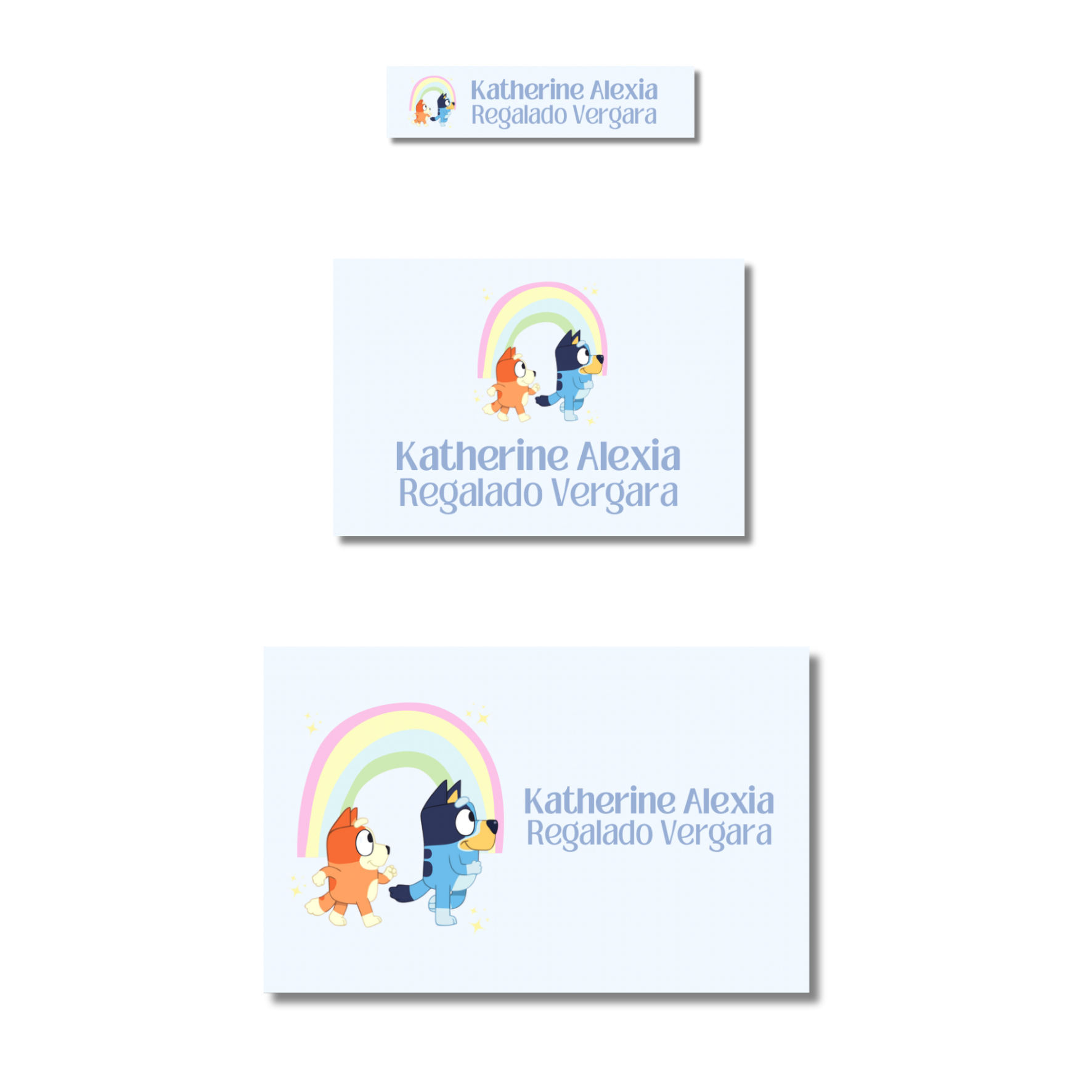 Bluey y bingo arcoíris Etiquetas Escolares Personalizadas Libretas, Libros y Lápices