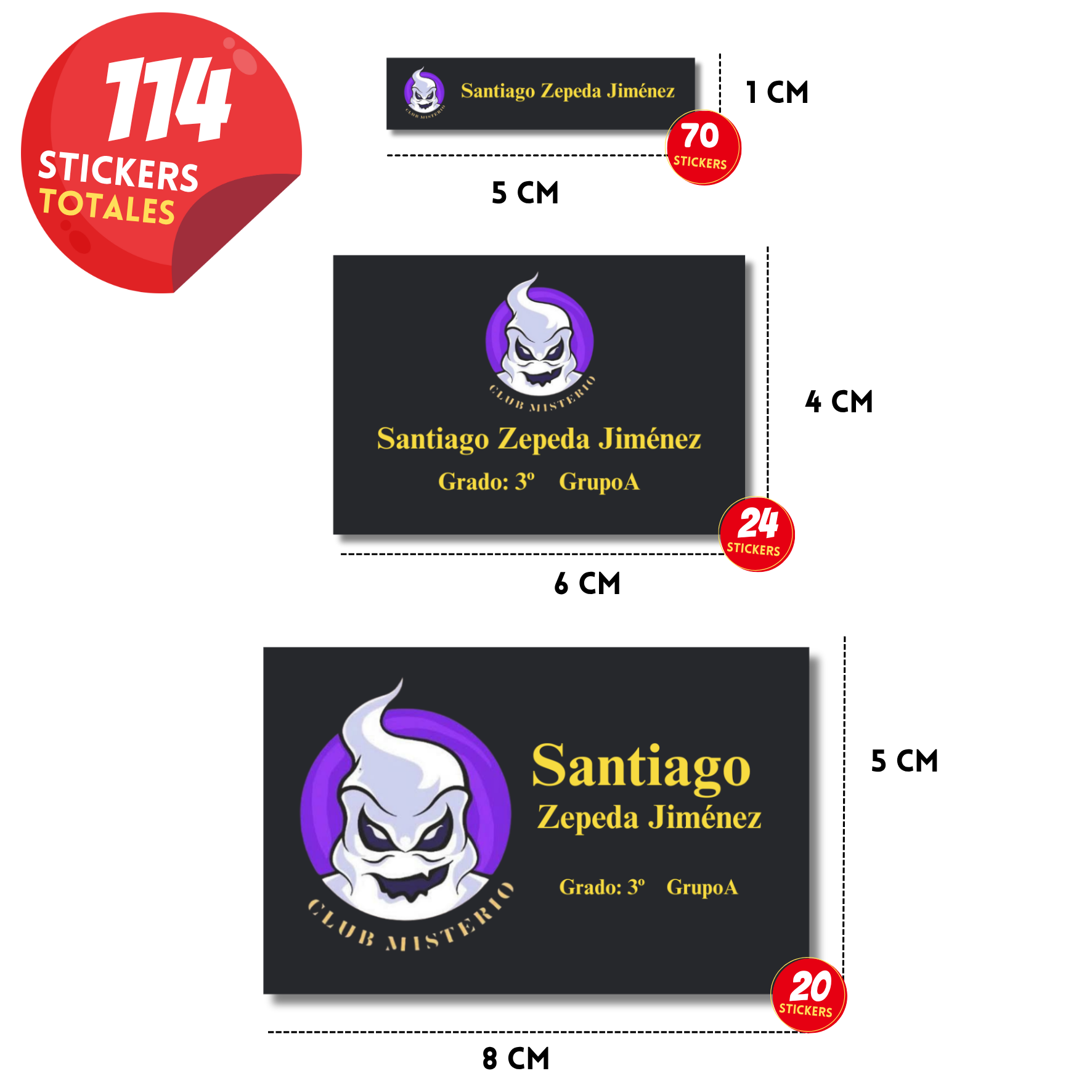 Club misterio Etiquetas Escolares Personalizadas Libretas, Libros y Lápices