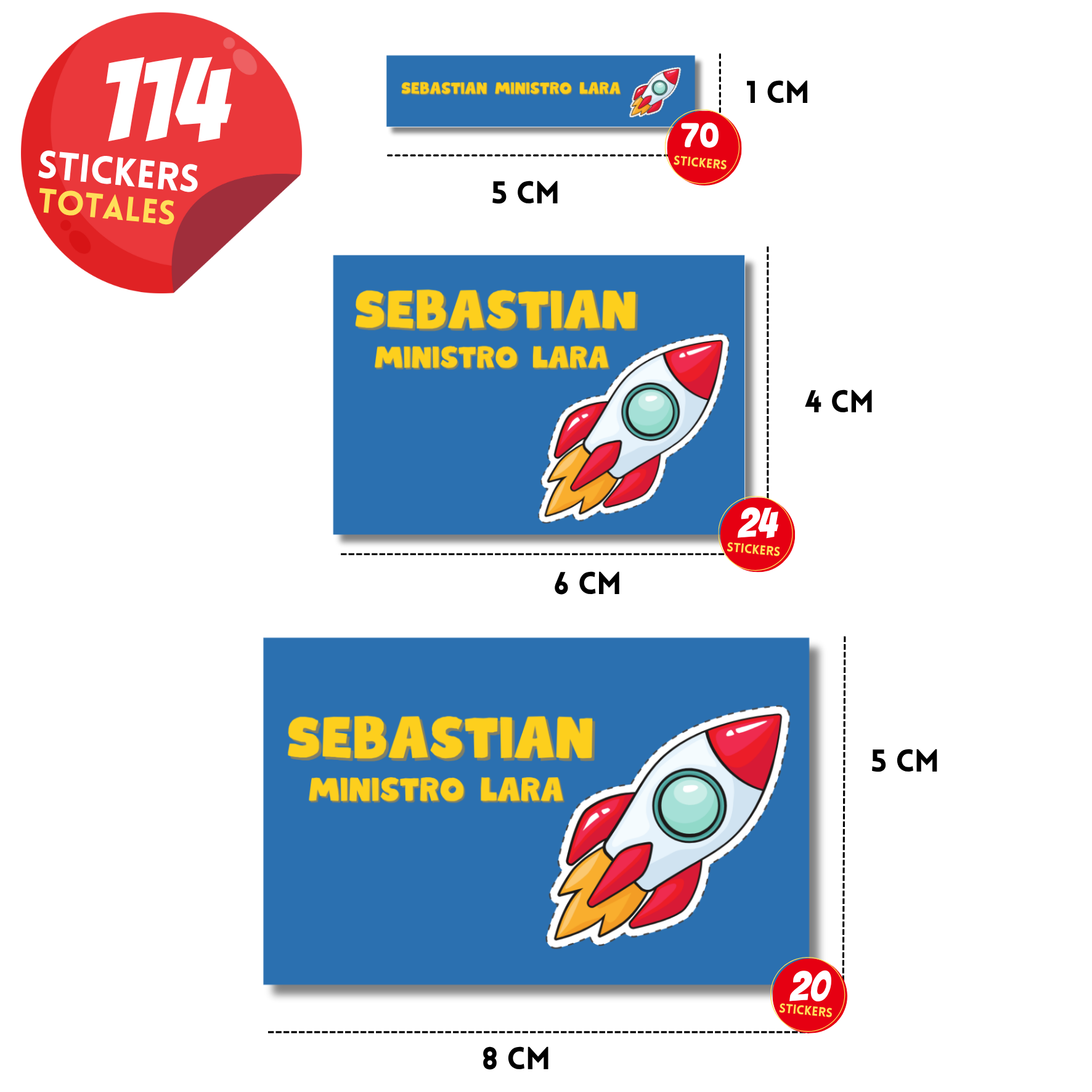 Cohete Etiquetas Escolares Personalizadas Libretas, Libros y Lápices
