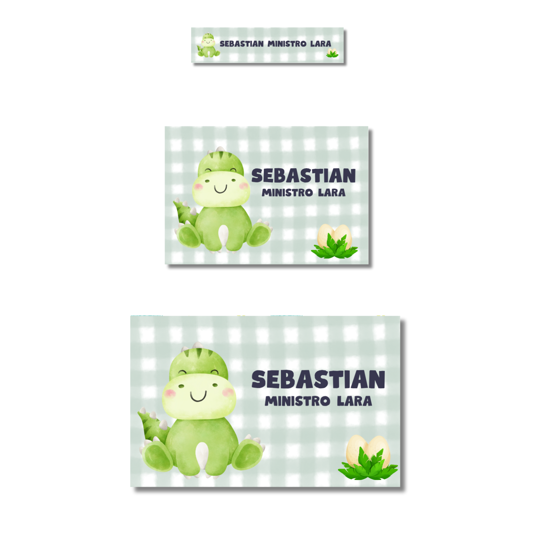 Dinosaurio Dino Etiquetas Escolares Personalizadas Libretas, Libros y Lápices