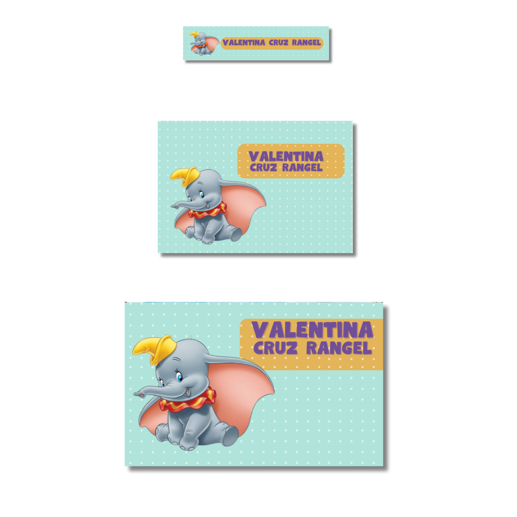 Dumbo Etiquetas Escolares Personalizadas Libretas, Libros y Lápices