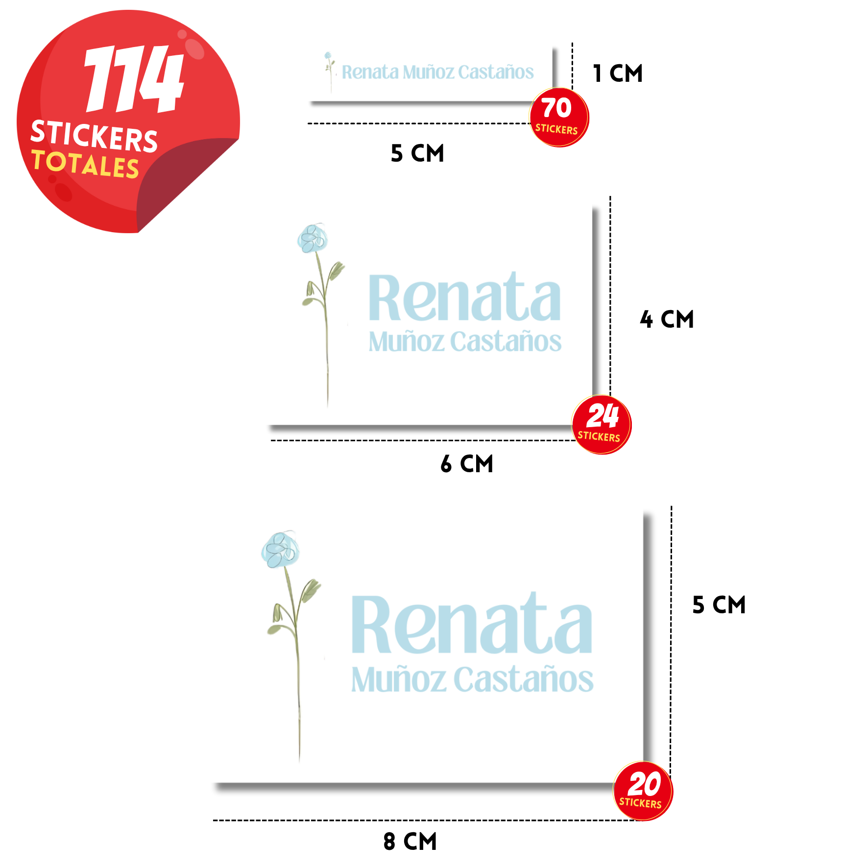 Flor Azul Aesthetic Etiquetas Escolares Personalizadas Libretas, Libros y Lápices