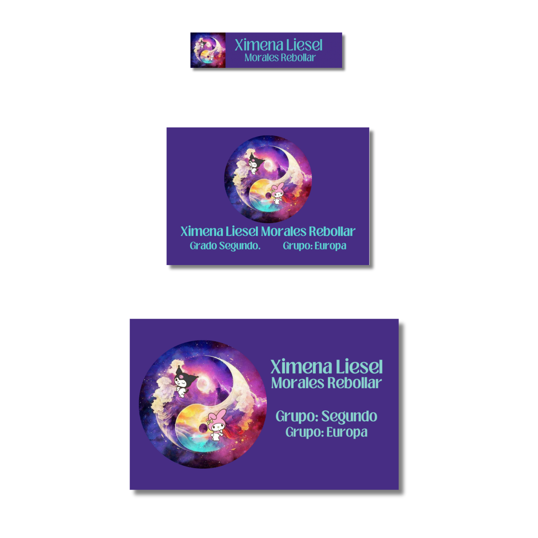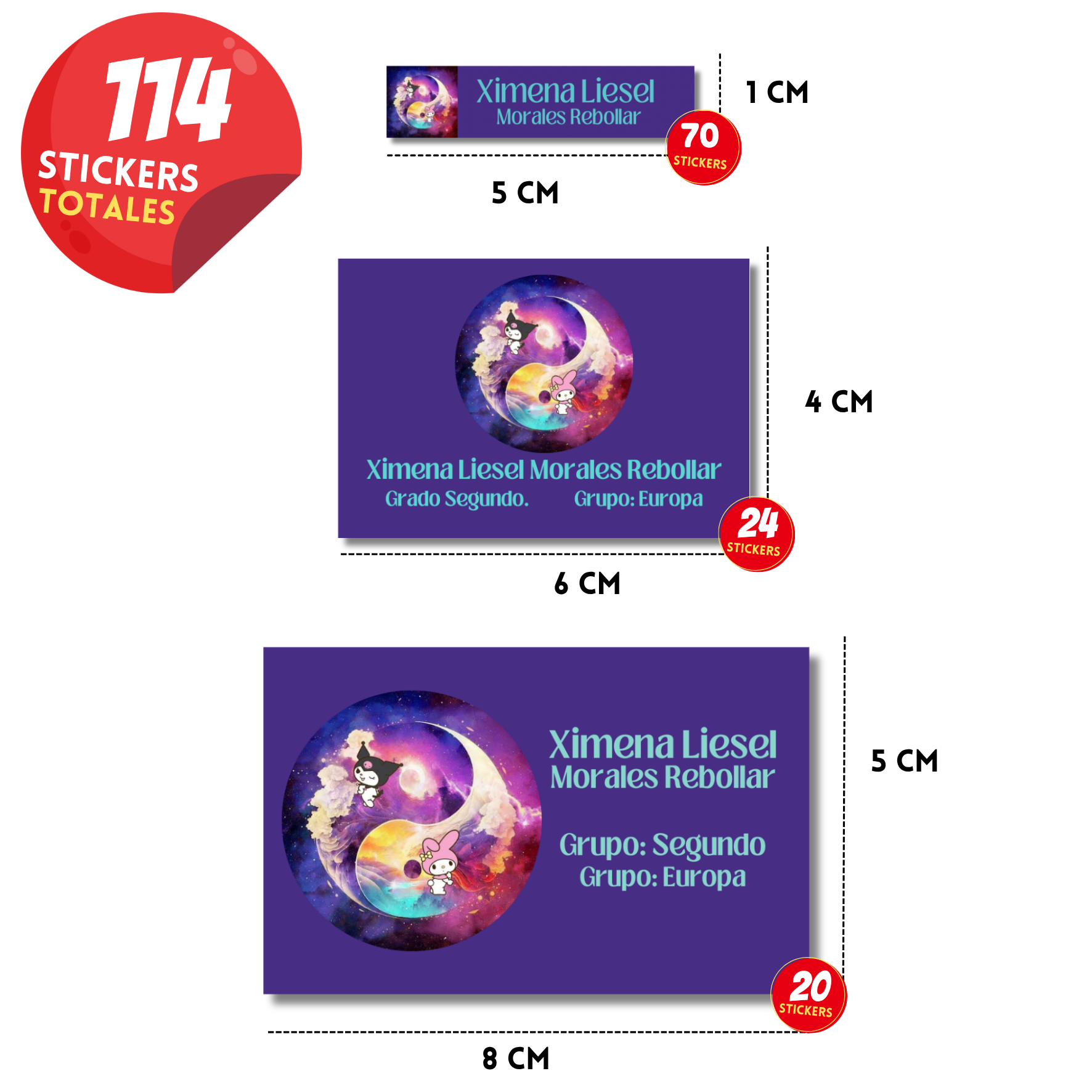 Kuromi y Melody, Ying Yang Etiquetas Escolares Personalizadas Libretas, Libros y Lápices