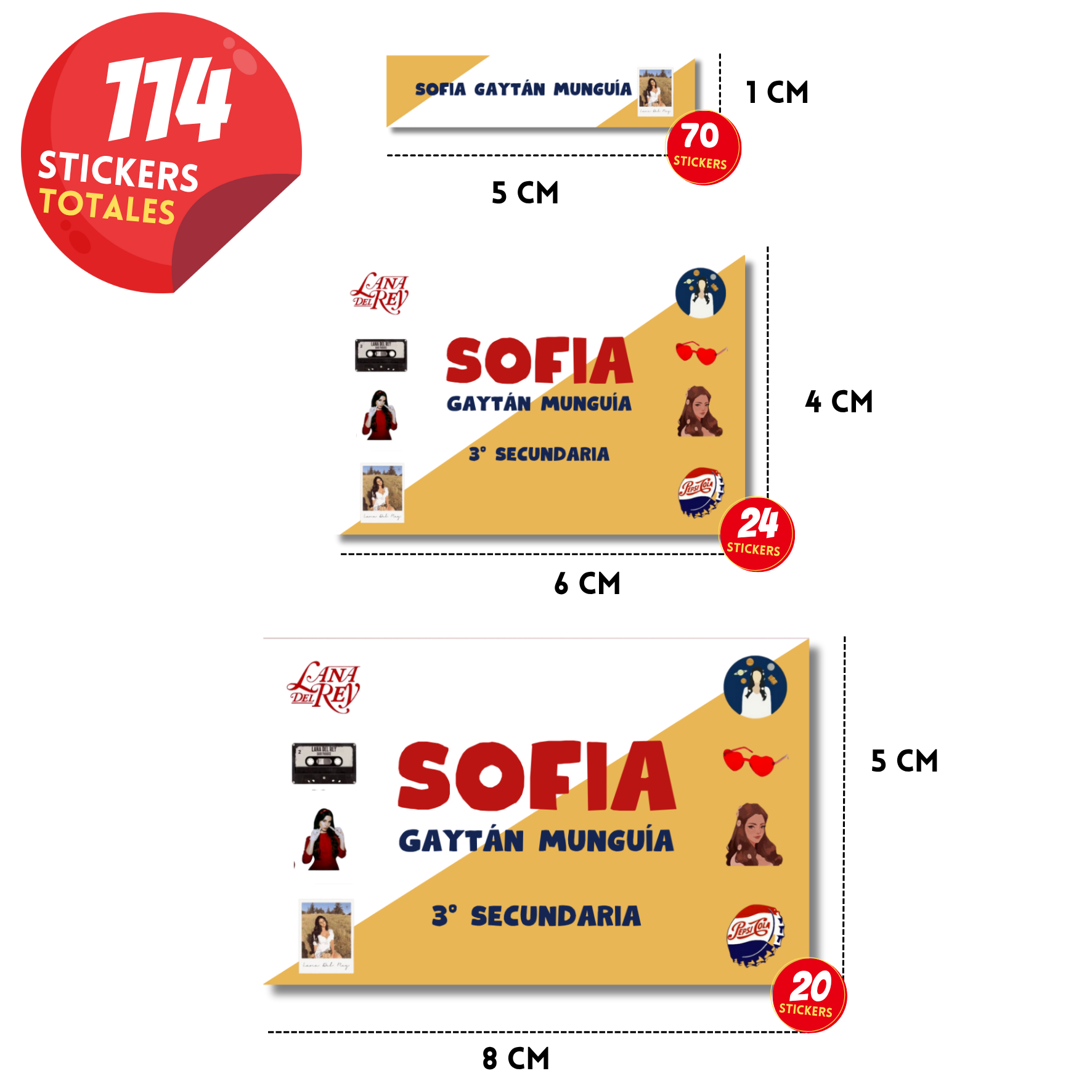 Lana del Rey Etiquetas Escolares Personalizadas Libretas, Libros y Lápices