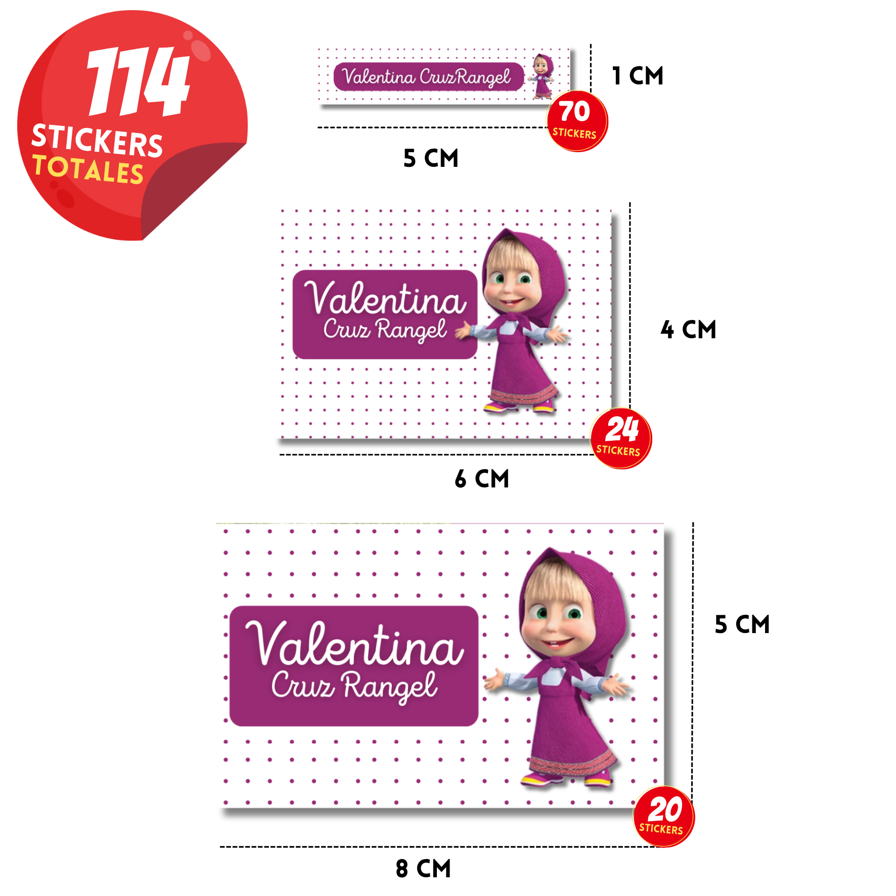 Masha Etiquetas Escolares Personalizadas Libretas, Libros y Lápices
