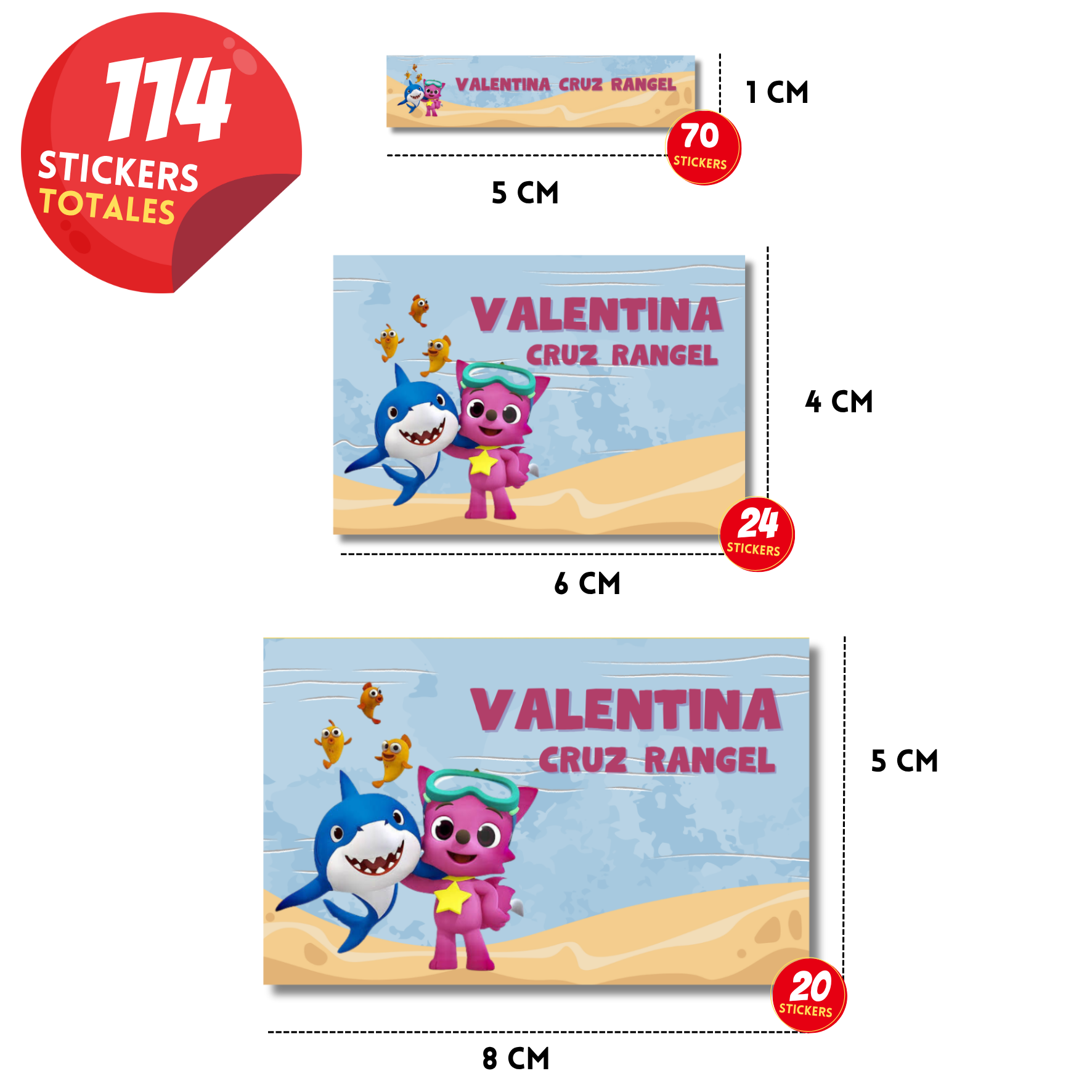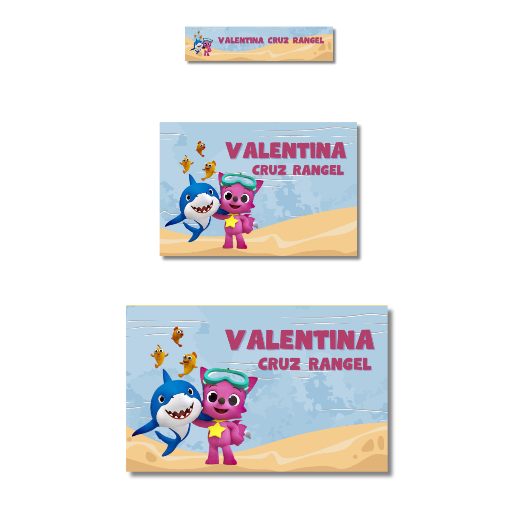 Pink Funk & Baby Shark Etiquetas Escolares Personalizadas Libretas, Libros y Lápices