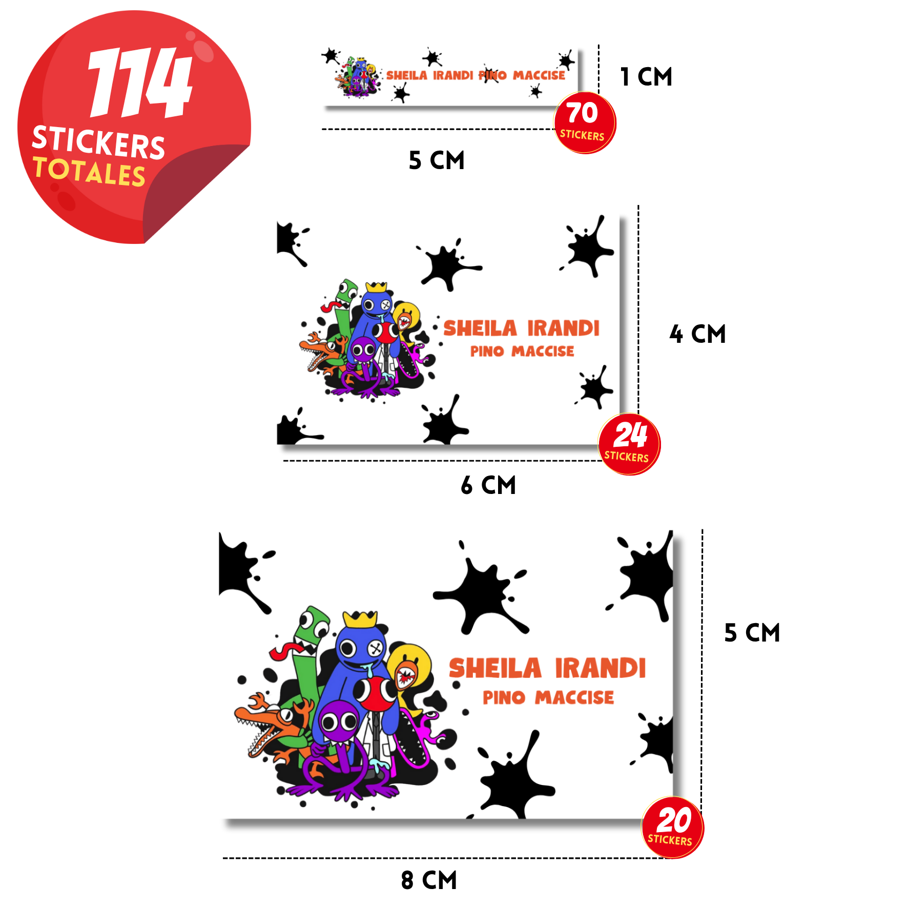 Rainbow Friends Etiquetas Escolares Personalizadas Libretas, Libros y Lápices
