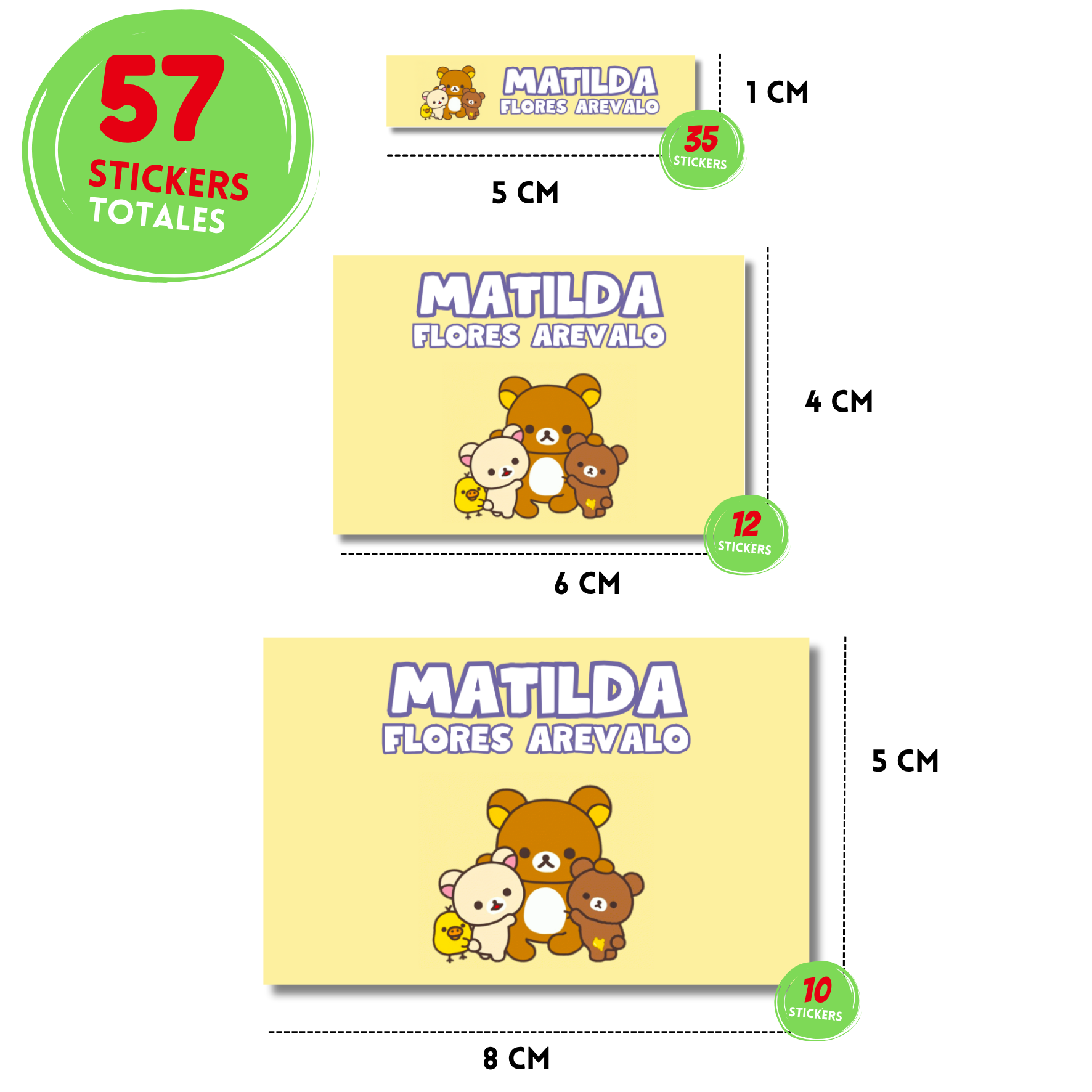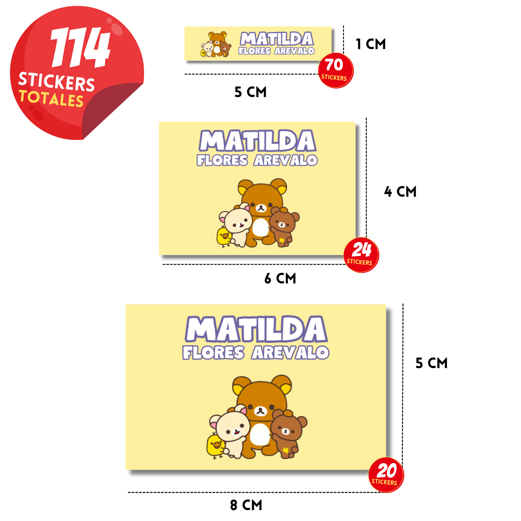 Rilakkuma Fondo Amarillo Etiquetas Escolares Personalizadas Libretas, Libros y Lápices