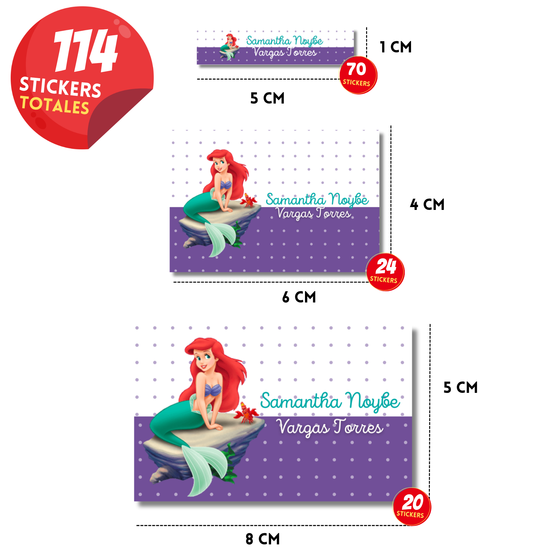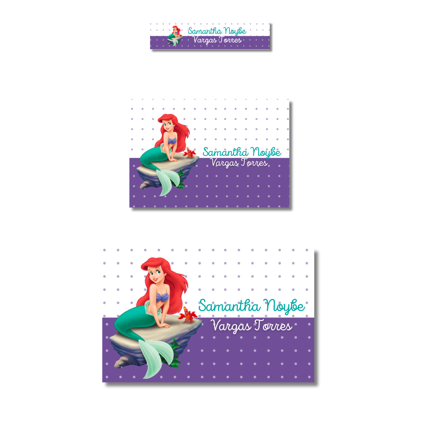 Sirenita & Sebastian Etiquetas Escolares Personalizadas Libretas, Libros y Lápices