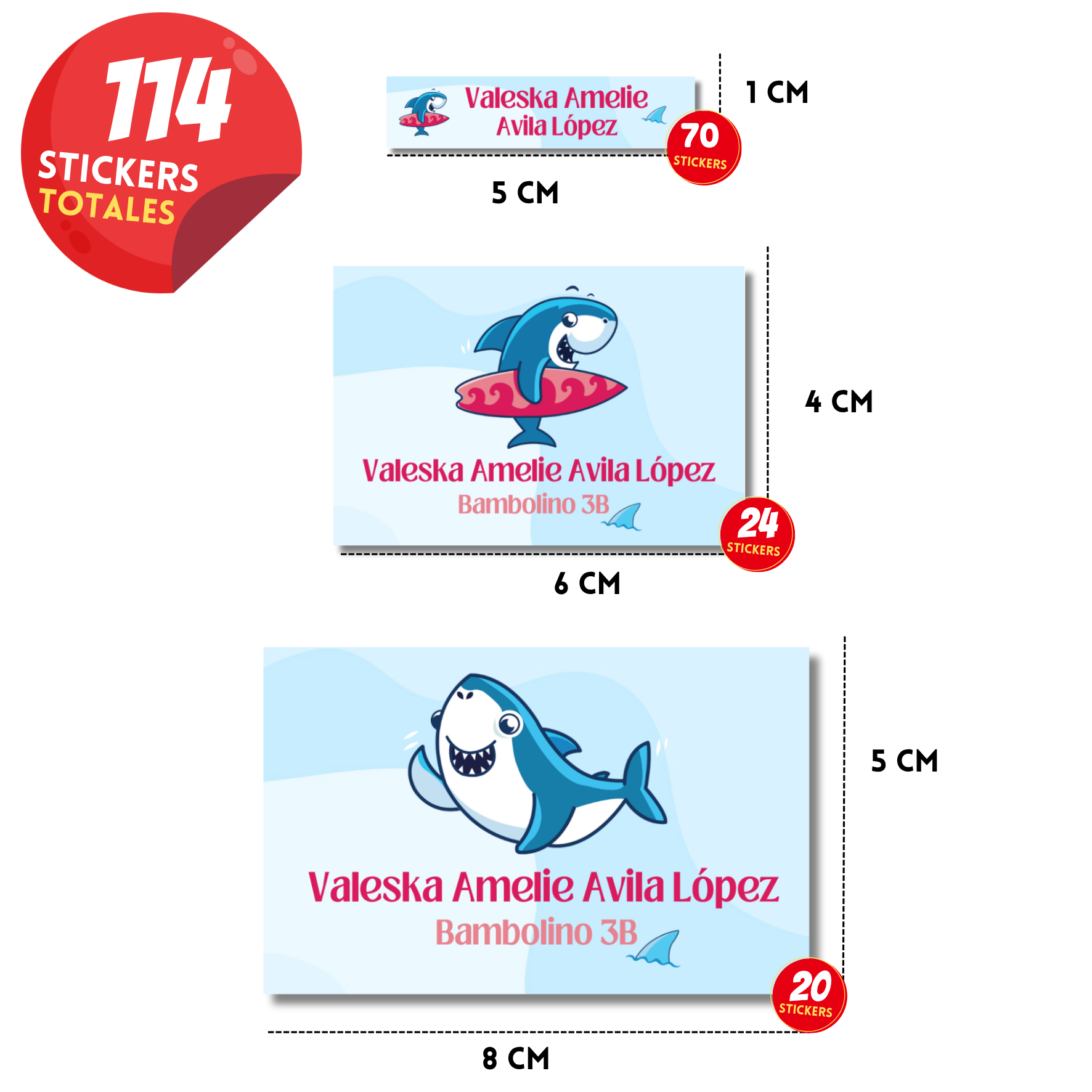 Tiburón bebé rosa Etiquetas Escolares Personalizadas Libretas, Libros y Lápices