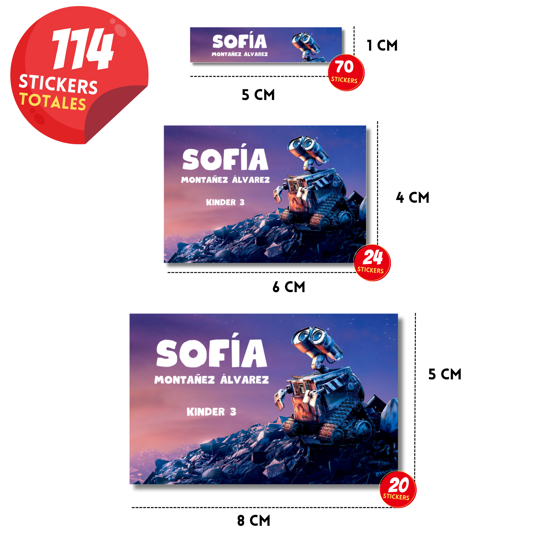 Wall-E Etiquetas Escolares Personalizadas Libretas, Libros y Lápices